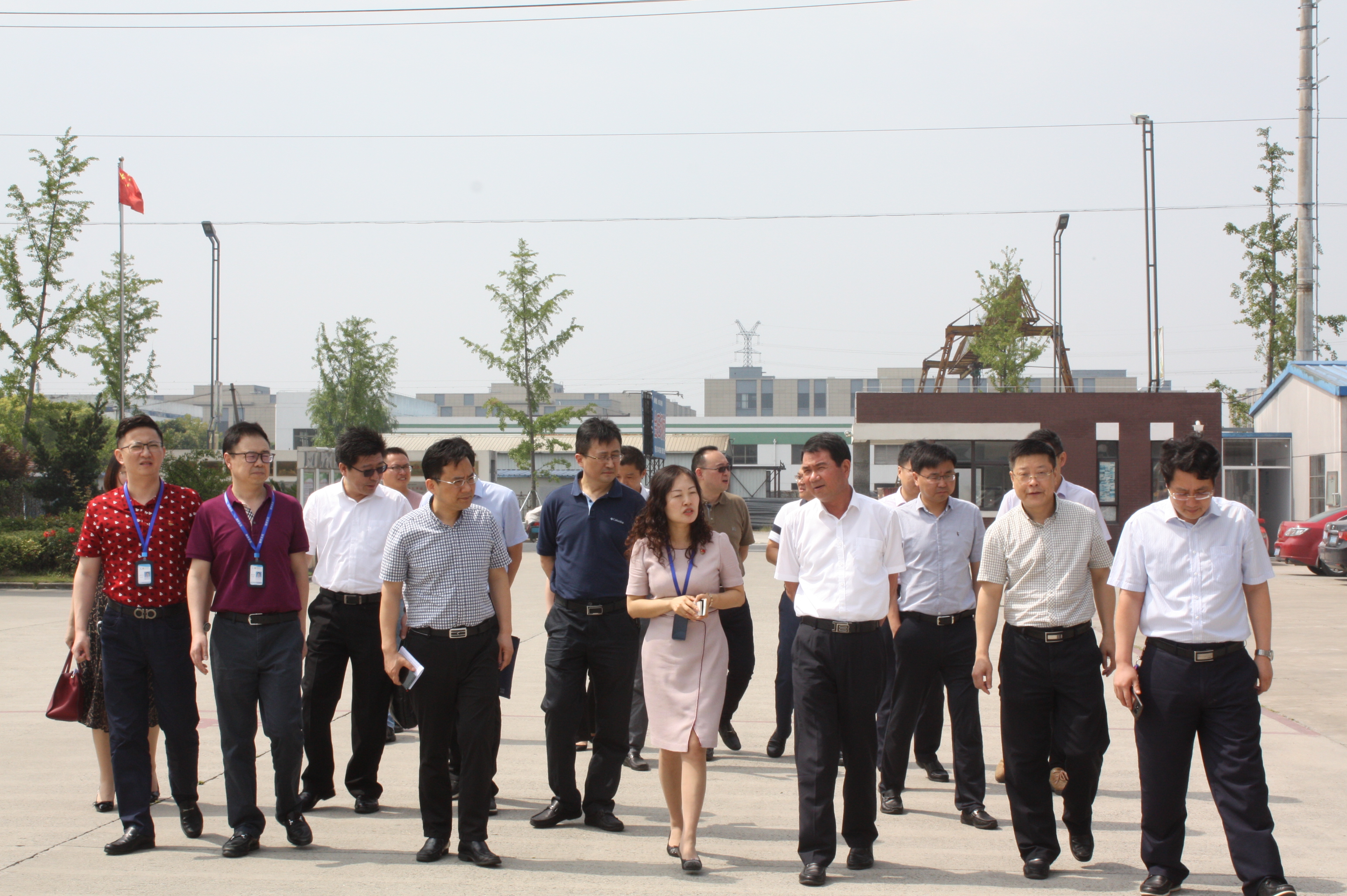 圖為南通市委副秘書長任新峰(前排右三)在公司黨委書記、董事長繆凌云、總經(jīng)理唐泉陪同下來考察公司。 |