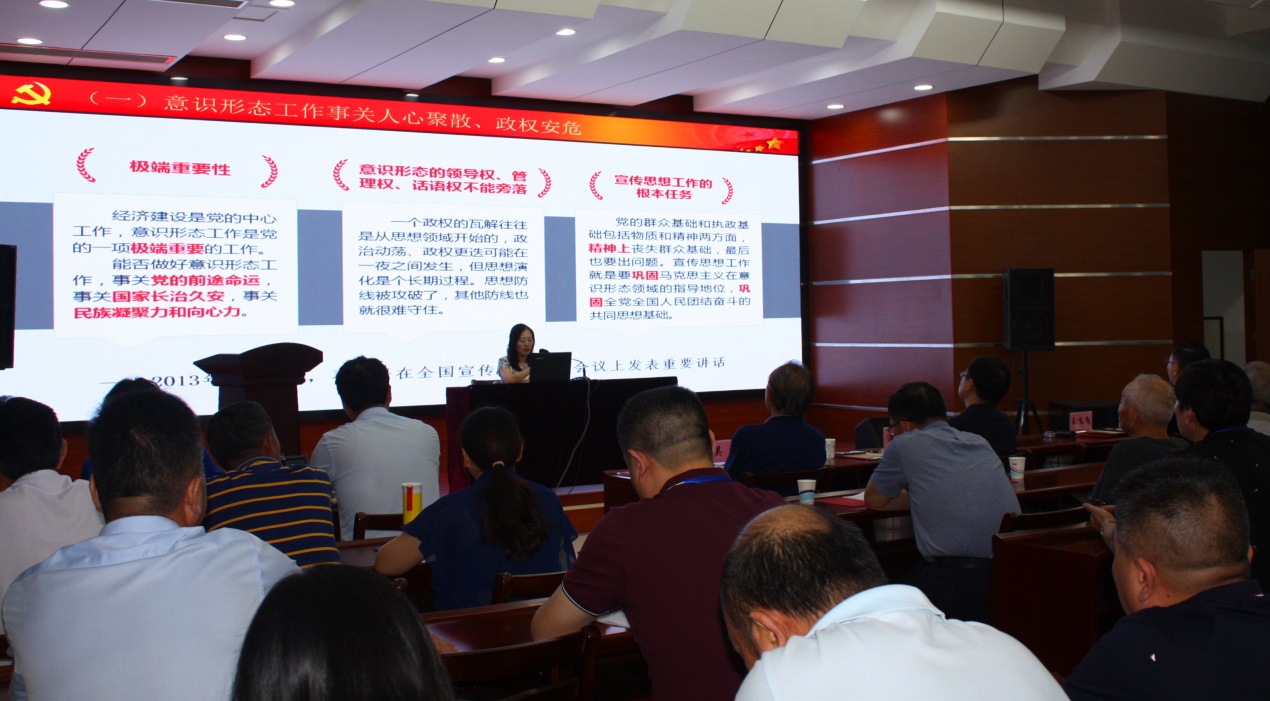 隨后,公司黨委書記、董事長繆凌云作題為《做好新形勢下意識形態(tài)工作》的黨課,用生動典型的事例,深入淺出地講解了“什么是意識形態(tài)”、“意識形態(tài)工作為什么極端重要”以及“建設(shè)具有強大凝聚力和引領(lǐng)力的社會主義意識形態(tài)”三個方面內(nèi)容,闡述了意識形態(tài)工作對黨和國家建設(shè)的重要性,要求全體黨員、干部增強黨性、提高覺悟,從自身做起、從現(xiàn)在做起,在意識形態(tài)斗爭中做到對黨忠誠、個人干凈、敢于擔(dān)當。