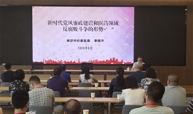 隨后,公司黨委邀請(qǐng)南通市紀(jì)委監(jiān)委宣傳部季錫平部長(zhǎng)上了一堂題為《關(guān)于新時(shí)代黨風(fēng)廉政建設(shè)和醫(yī)藥領(lǐng)域反腐敗斗爭(zhēng)的形勢(shì)》的黨課,帶領(lǐng)大家重溫習(xí)近平總書記關(guān)于黨風(fēng)廉政建設(shè)和反腐敗斗爭(zhēng)的重要論述、回顧反腐敗斗爭(zhēng)壓倒性勝利的形成和鞏固發(fā)展、分析整治醫(yī)藥領(lǐng)域不正之風(fēng)的新要求新動(dòng)態(tài),教育引導(dǎo)黨員干部加強(qiáng)自我約束、提高廉潔意識(shí),在知敬畏、明底線、受警醒中永葆共產(chǎn)黨人的政治本色。