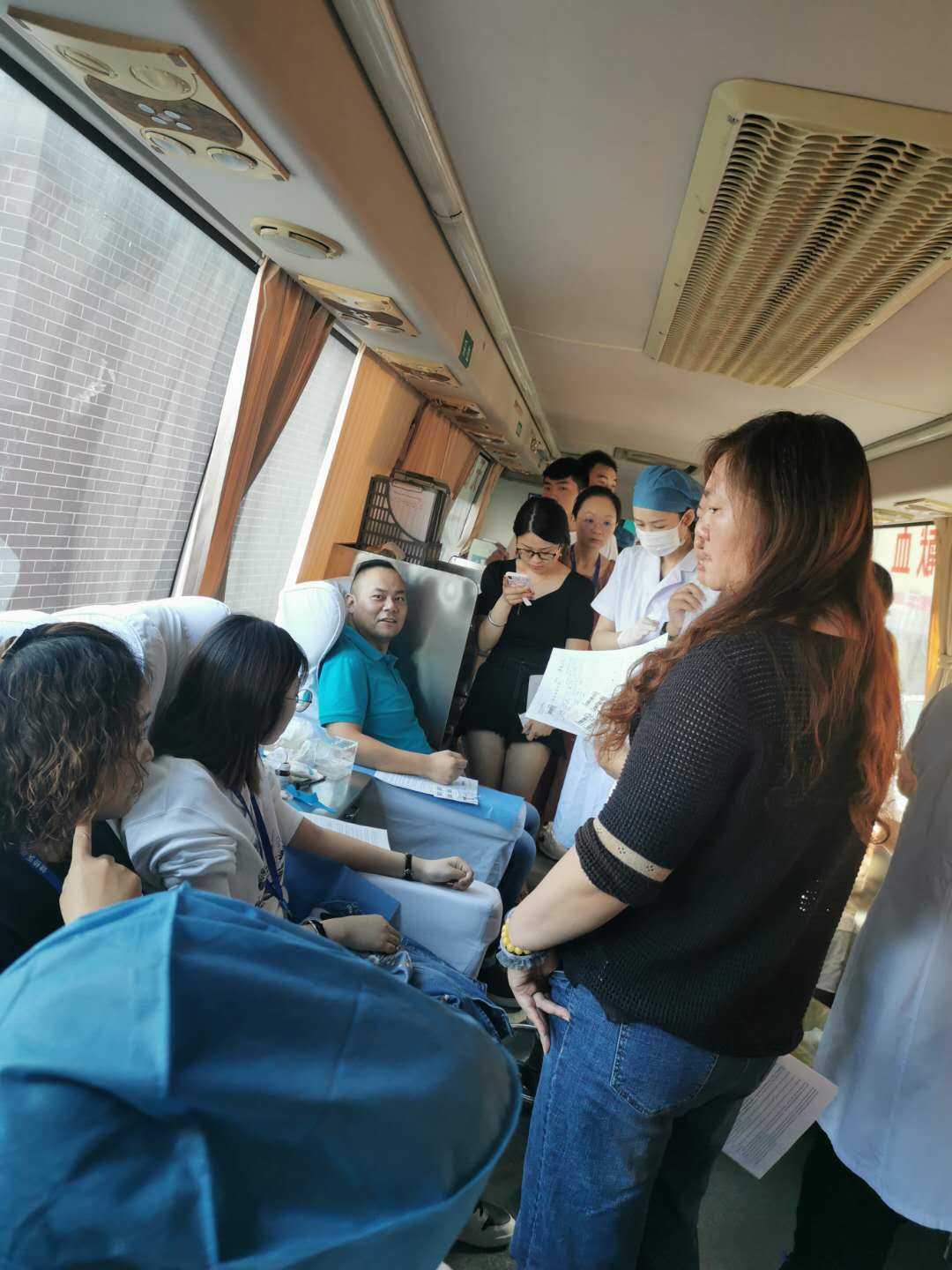 活動現(xiàn)場,通過初檢的人員依次排隊獻血